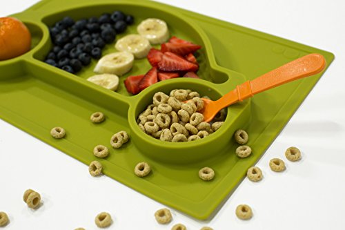 Bye, Bye Mealtime Mess: Is your cherub a plate thrower? No more tipping & tossing dishware with this adorable 1-piece molded silicone mat. Suctions securely to any hard, flat surface.