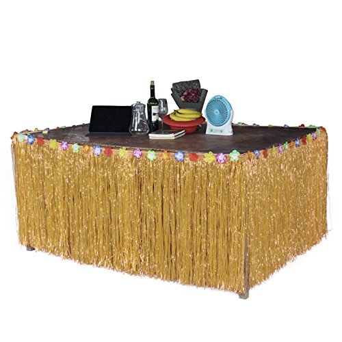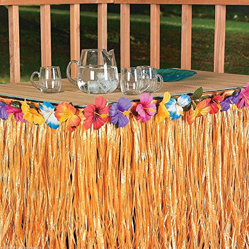 DRESS UP YOUR TABLE - Finish off your beach party decorations with this hibiscus natural colored table skirt. Spreads 9 ft out and hangs 29" inches low.