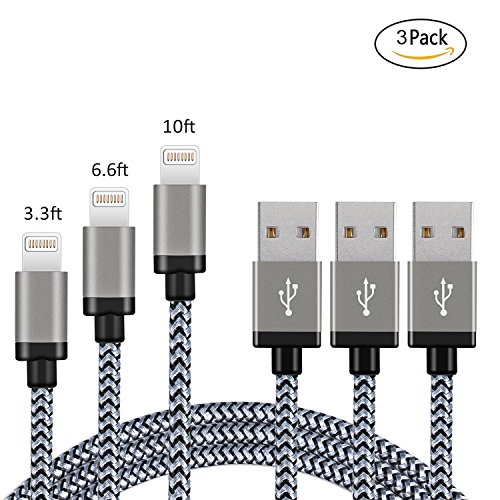 -. Title : Upow Lightning Cable 3Pack 3FT 6FT 10FT Nylon Braided 8Pin Lighting Charging&Syncing Cable for iPhone8, 8Plus, iPhone X, iPhone 7, 7Plus, 6s, 6s Plus, and more Apple Device (White/Grey)