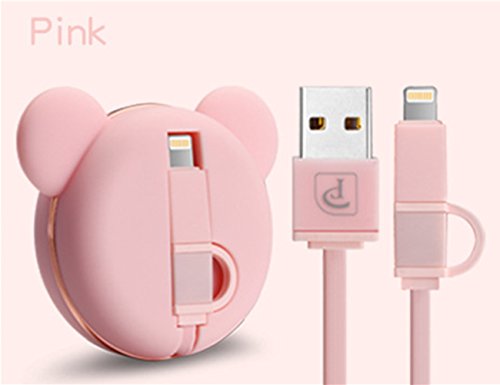 -. Feature : 2 IN 1 SYNC CHARGING CABLE - lightning 8 pin and micro USB 2.0 cable with high speed data transmission and fast charging. / FLEXIBLE DESIGN - adjustable cord, 3.3 feet in length, 4 gear to connect: 0.8ft, 1.7ft, 2.5ft, 3.3ft. / COMPATIBLE DEIVES - devices with lightning interfaces and micro usb interfaces, such as iPhone8, 7, 7 Plus, 6s, 6s Plus, 6, 6 Plus, 5s, 5c, 5,SE,iPad, iPod, Samsung, Note, Sony Xperia, etc. / PORTABLE AND CUTE DESIGN - the cord can retract into a cute bear shaped circular shell avoiding tangled with other stuffs in your pocket, purse, handbag. / IMPORTANT NOTE - please pull both two ends of the cord at the same time when you want to retract it, or the cord will be damaged.