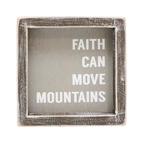 Faith Can Move Mountains Grey 5 x 5 Inch Wood Framed Hanging Wall Plaque