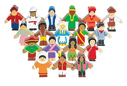 -. Feature : Countries/cultures include: Canada, Saudi Arabia, Israel, Ghana, Russia, Germany, Korea, Australian Aborigine, Holland, India, Italy, Mexico, Japan, Tahiti, China, Inuit American, Native American, Guatemala / Introduce diversity and culture / Encourage understanding of similarities and differences in others / Constructed of solid wood / Figures measure 3"l x 1"W x 3"H