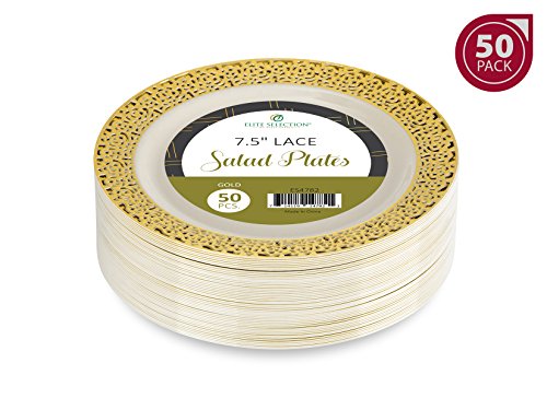 - Elite Selection Hard Plastic Party Plates With Nice Gold Lace Style 7.5 Inch