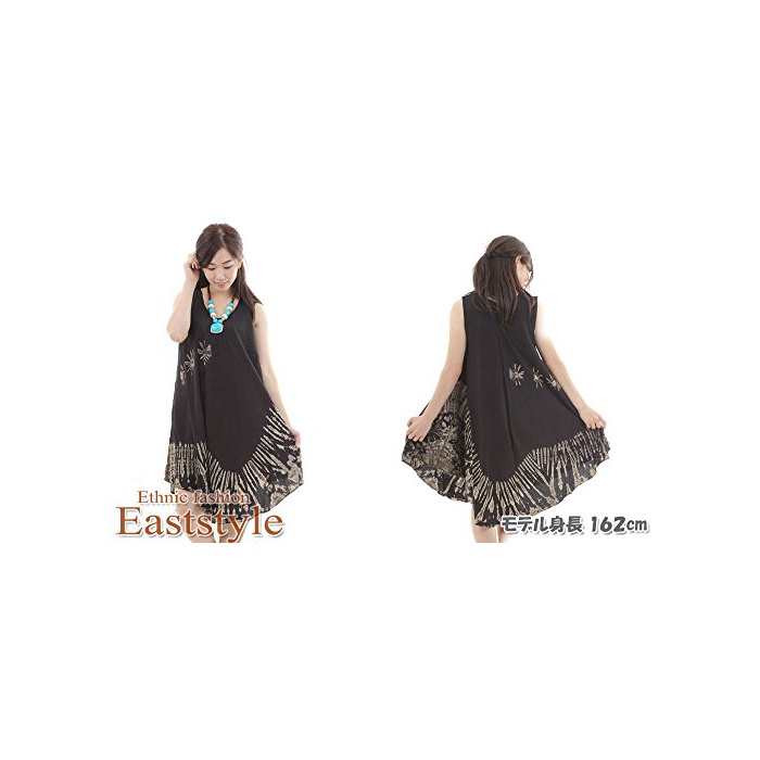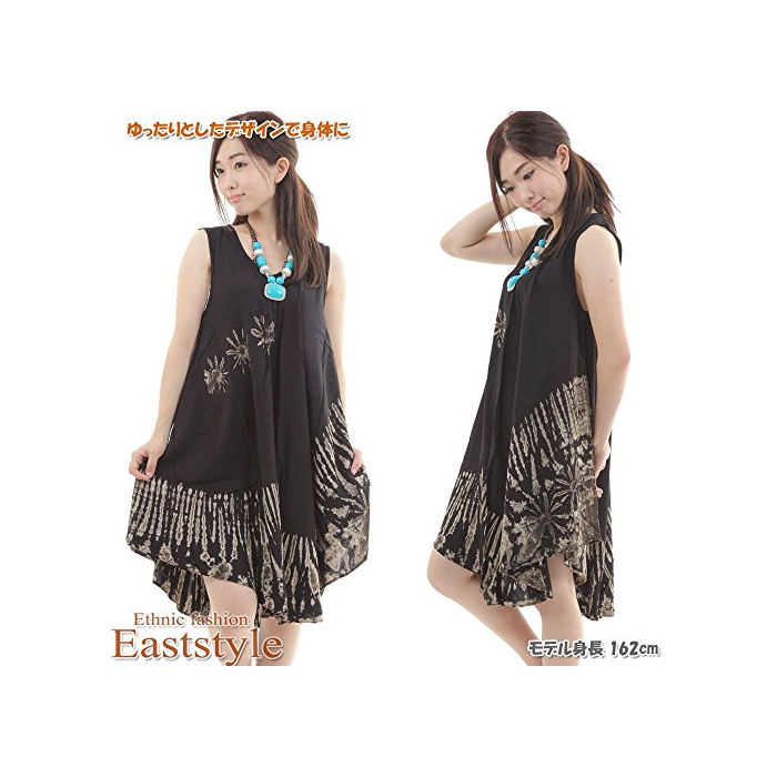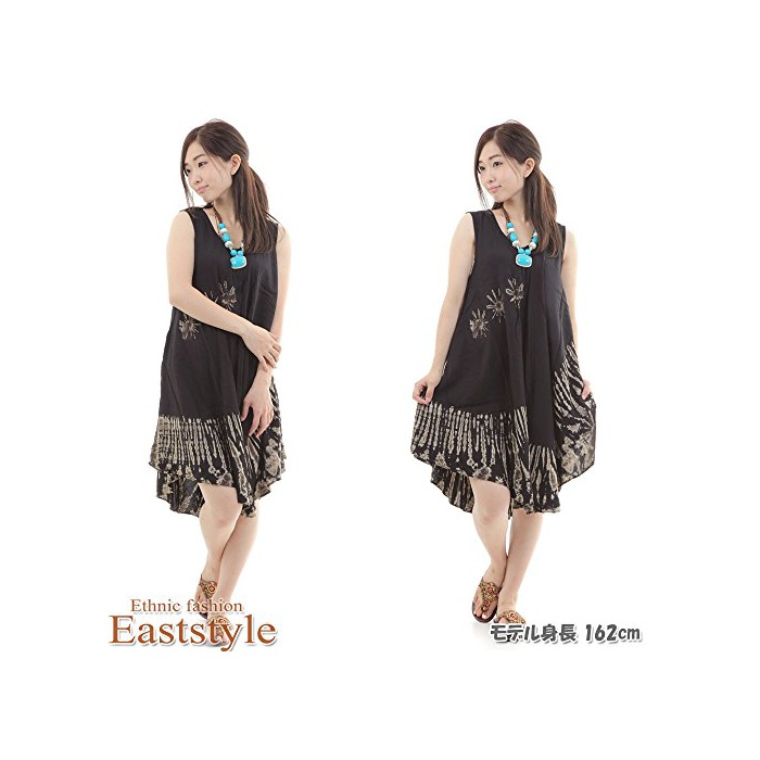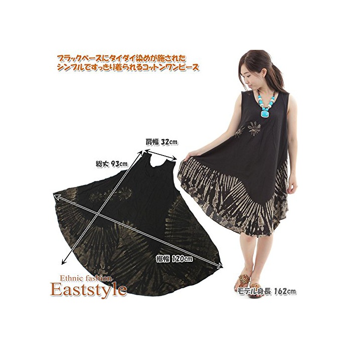 원본상품명: 1P04_タイダイ柄 サ?キュラ? ワンピ?スモノクロ ブラック 袖なし マキシ丈 膝丈 チュニック