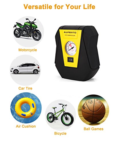 Analogue Air Compressor,AUPERTO 12V DC Tire Inflator Pump Portable -100 PSI for Compact / Midsize Sedan SUV
