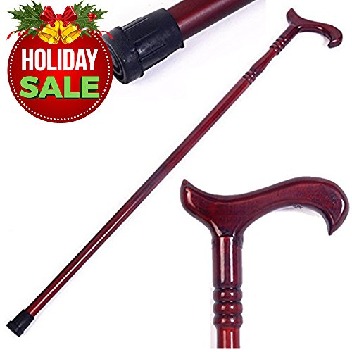BEAUTIFUL ??Stunning design that is elegant ALL WOOD ?Solid stick handle of eucalyptus with no metal parts DURABLE FINISH ? Mahogany stain with glossy clear protection COMFORTABLE HANDLE ? Curved design for palm, fingers, thumb VERY STABLE? Anti-slip thick rubberized tip CAPABILITY ? Able to hold up to 330 lbs ARTISTIC CARVING ?Simplistic 3 knobs for variety NO ASSEMBLY ? Ready to use out of the bag