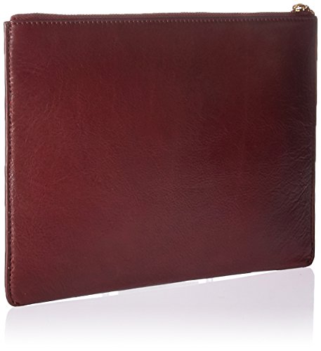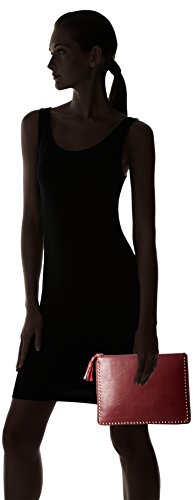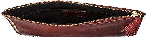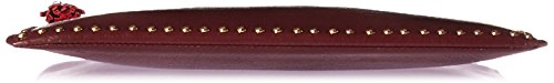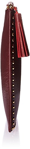 Flat clutch featuring polished metallic studding and a tasseled zipper pull for a chic look