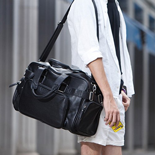 -. Brand : Lalagen -. Department : Lage -. Feature : MATERIAL---- Durable and Quality Soft and Litchi Stria Leather, Comfortable and Breathable. / DIMENSIONS----11.02" L x 19.69" H x 6.30" W, 47.24" Shoulder Drop, Adjustable and Removable. / STRUCTURE---- 1 main Zippered Pocket, 1 zipper pocket in front, 2 side zipper pocket, 1 cell phone pocket and 1 wallet pocket,as well as 1 laptop sleeve.Spacious Compartment to Carry Clothes, iPad, Magazines, Books, Travel Items, etc. / TRAVEL COMPANION---- Pratical duffel perfect for short-distance Travel, 2-5 nights Business Trips, Weekend Getaways etc. / HUMANIZED DESIGN---- Thickening cotton-lined computer insulating layers, quality smooth zipper, reinforcement strap, adjustable and detachable shoulder strap, quality feet pad in bottom to prevent abrasion. -. Model : LLG5151 -. ProductGroup : Apparel -. ProductTypeName : LAGE -. Title : LaLagen Men's Leather Suitcase Travel Overnight Weekend Duffle Boarding Lage Bag