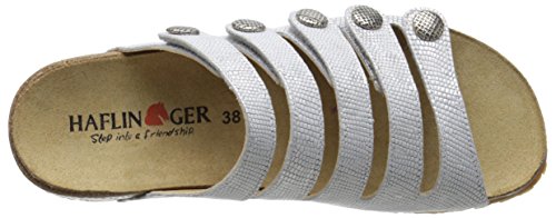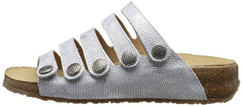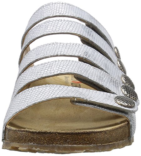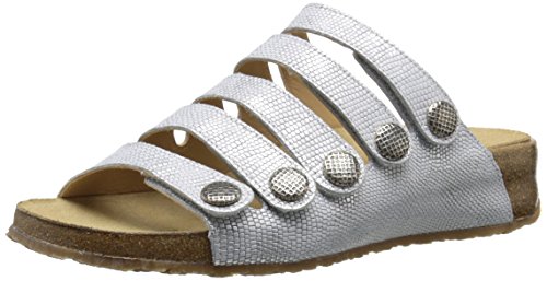 Slide sandal featuring textured multi-strap upper with hook-and-loop adjustability and decorative gunmetal-tone buttons Contoured footbed with arch support Cork-latex midsole Brand : Haflinger Item model num : TS PAYTON PLATINUM MPN(PartNumber) : TS PAYTON PLATINUM-045 EAN : 4051966812639