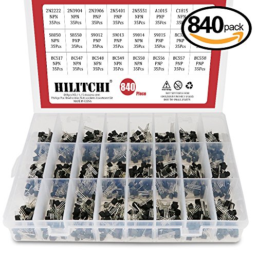 Hilitchi 24-Values 2N2222-S9018 / BC327-BC558 NPN PNP Power General Purpose Transistors Assortment Kit - Pack of 840