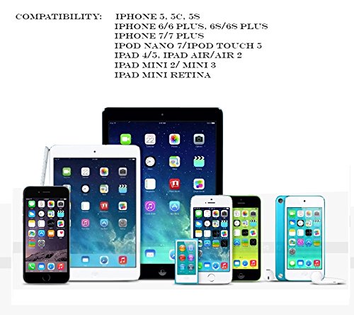 - [ PERFECT COMPATIBILITY ] : Perfect fit with iPhone 7, iPhone 7 Plus,iPhone 6s Plus,iPhone 6s,iPhone 6 Plus,iPhone 6,iPhone 5,5c,5s,iPod Nano 7, iPod Touch 5, iPad 4, iPad 5, iPad Air 2, iPad Air, iPad mini 3, iPad Mini 2, iPad Mini Retina. Support for newest iOS, and future iOS version "NO ERROR MESSAGE"