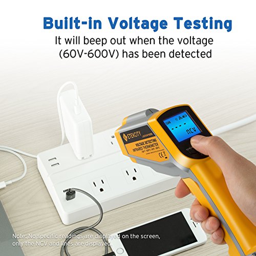 Etekcity Lasergrip1025D Digital Dual Laser Infrared Thermometer Temperature Gun Non-contact -58℉~1022℉ (-50℃ ~ 550℃) with Voltage Detecting , Adjustable Emissivity
