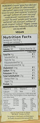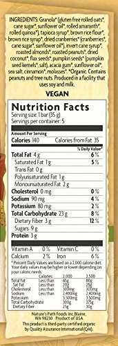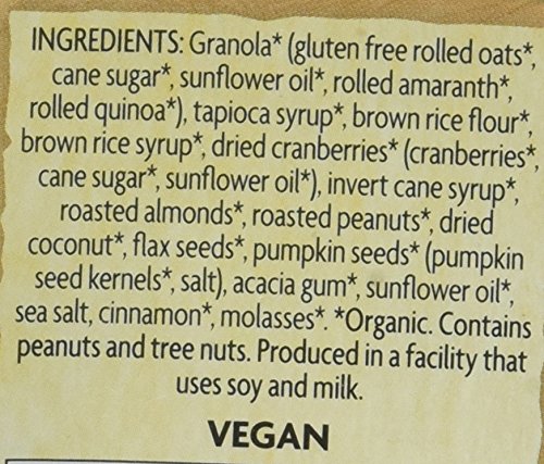 Feature : Contains 1 - 6.2 ounce box of Nature's Path Granola Bars, Trail Mixer (5 bars per box) / A classic trail mix bar with cranberries, sweet almonds, peanuts, coconut, pumpkin seeds, flax seeds, and gluten free oats / 12g whole grains, 3g fiber and 3g protein / Gluten-free and wheat-free / All Nature's Path products are USDA Organic, Non-GMO verified and Vegetarian / A pack of 6.17-Ounce / Granoal; sweetened dried cranberries; roasted almonds; roasted peanuts; dried coconut / Gluten free and organic; Non GMO / Uniited States