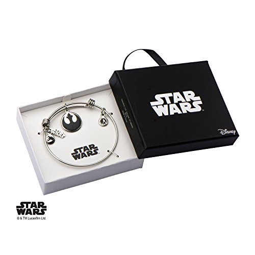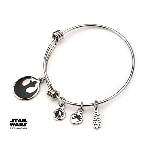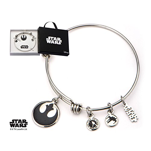 Women's Stainless Steel Star Wars Rebel Symbol Charm Expandable Bracelet. Licensed Jewelry Box Included. Dimension: 7 1/2" (length) x 1/16" (Width) x 1/16" (Height).