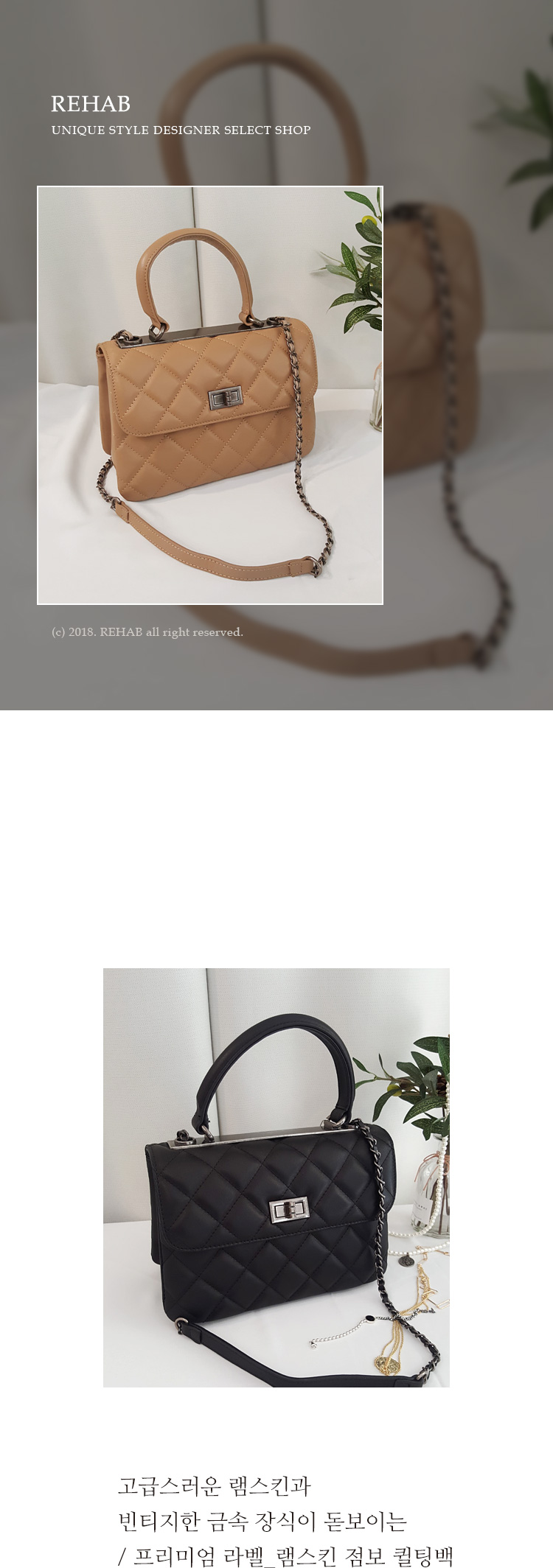 (プレミアムのラベル) ラムスキンのジャンボキルティングバッグ