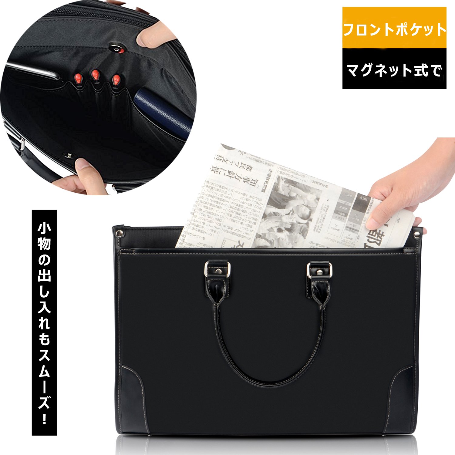 · The front pocket of the business bag can be easily opened and closed with a magnetic type.