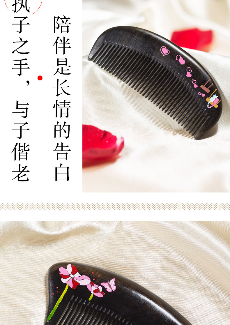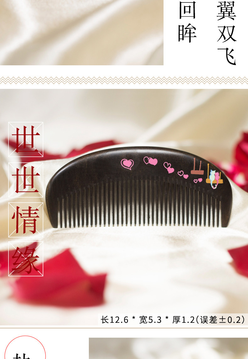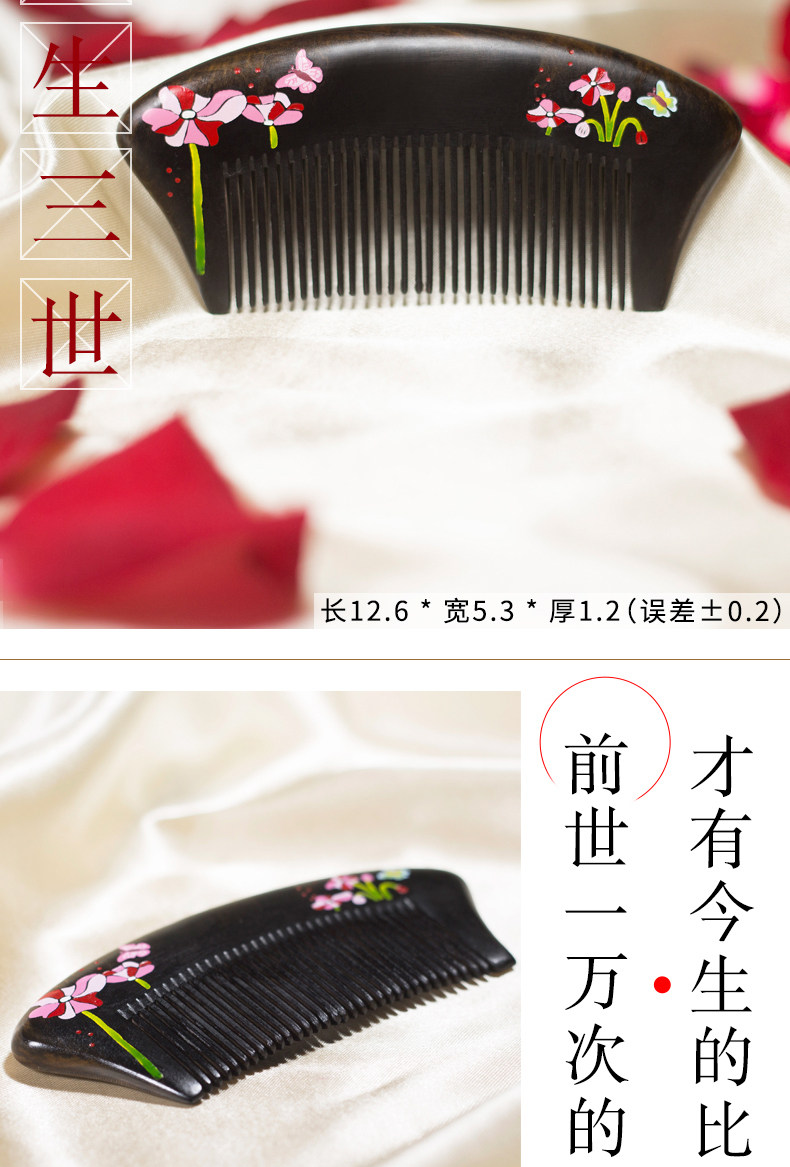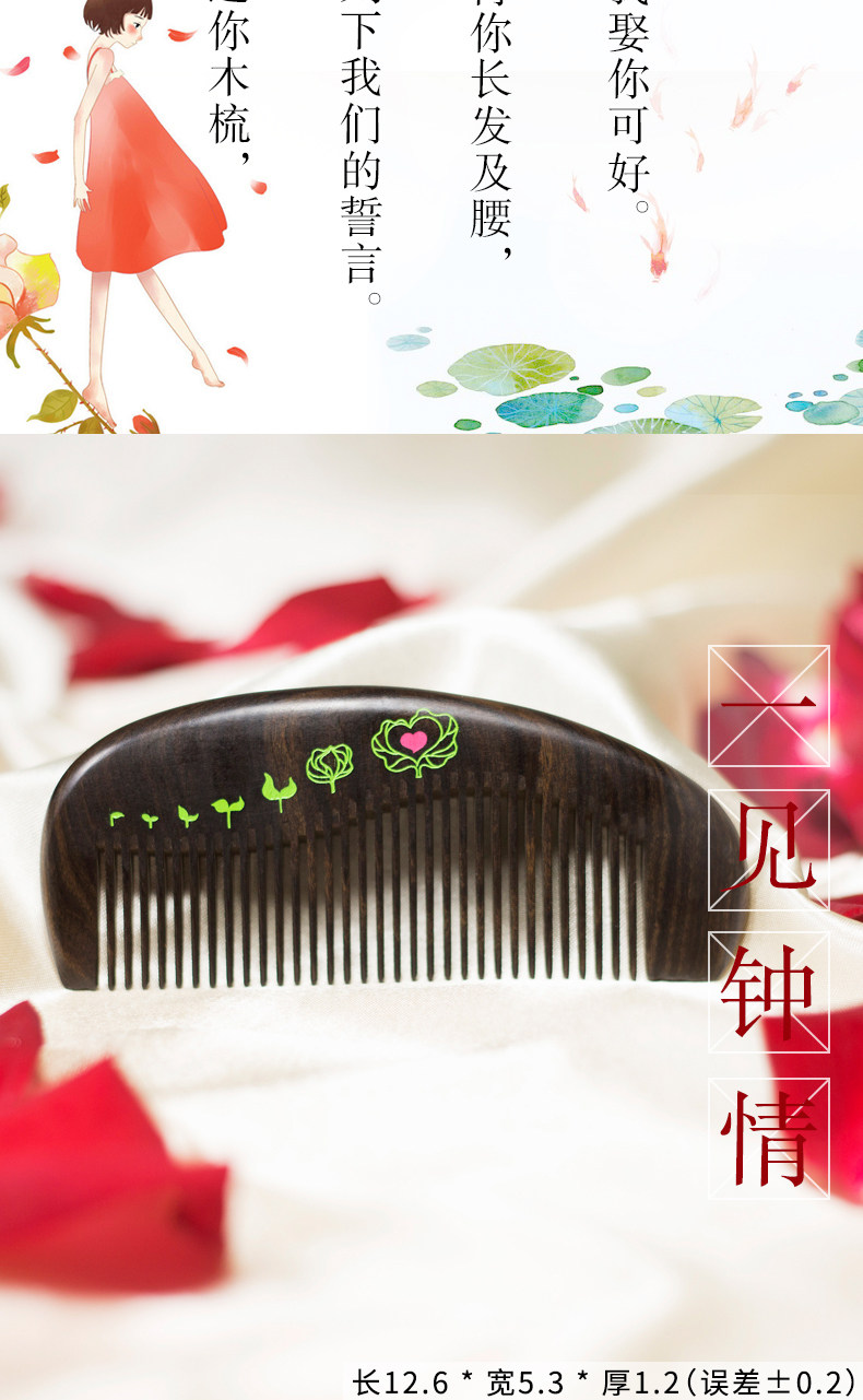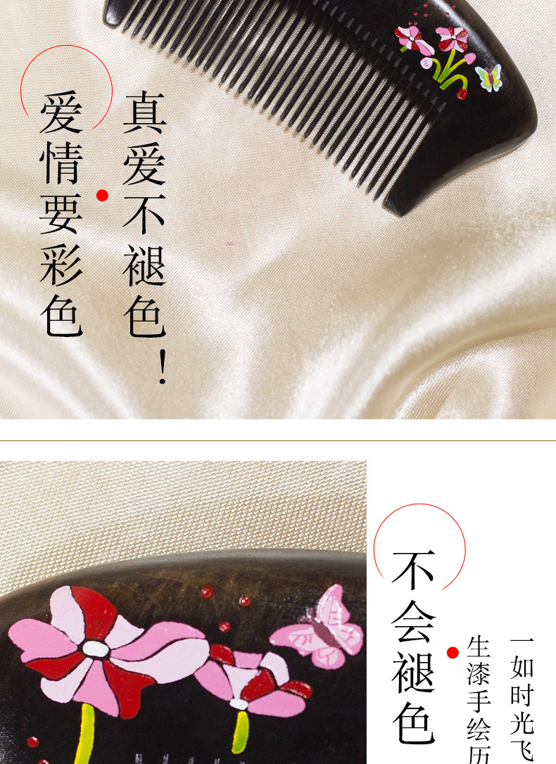 手绘漆艺木梳子沉贵宝七夕情人节送女友生日礼物赠女神