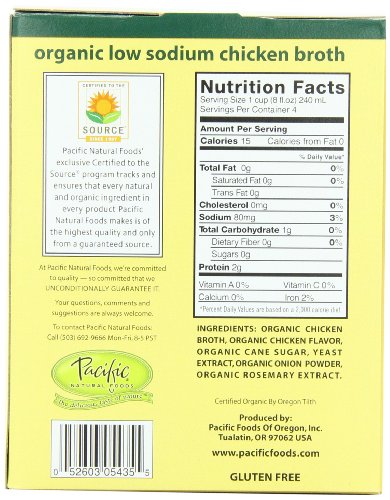 Pacific Foods Organic Free Range Low-Sodium Chicken Broth, 8-Ounce Cartons, 24-Pack