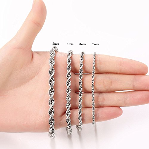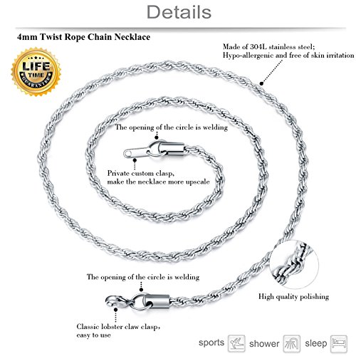 Stylish and classic stainless steel twist chain necklace design, you can wear the necklace alone or add on a pendant.This product has many length variations, suitable for men and women of all ages. Smooth edges on each link will never scratch or pull your hair, comfortable to wear as a daily jewelry. Made of stainless steel which guarantees high strength and hardness, free of lead and nickel and will never fade. It won't make your neck green or break out.