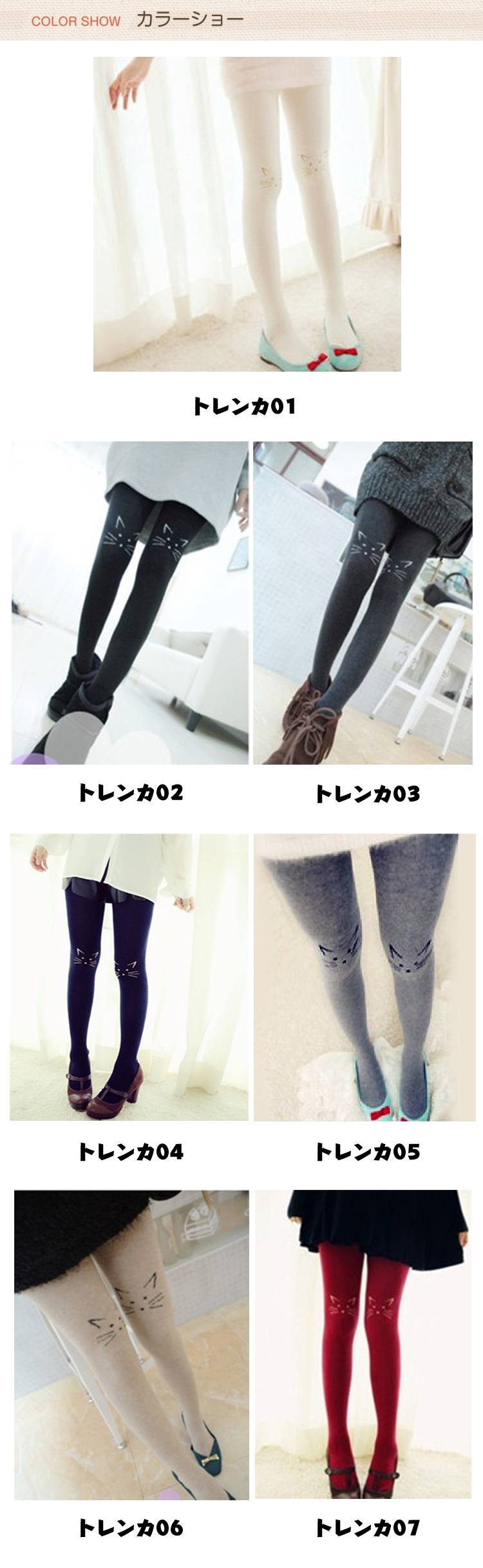 | 色 | トレンカ01 トレンカ02 トレンカ03 トレンカ04 トレンカ05 トレンカ06 トレンカ07 トレンカ08 タイツ01 タイツ02 タイツ03 タイツ04 タイツ05 タイツ06 タイツ07 タイツ08 |
