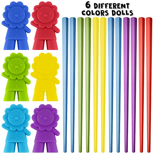 HAVE FUN TOGETHER: 6 Pairs of colorful chopsticks with dolls. Dolls are removable so you can also only use the chopsticks after you've learnt to use.