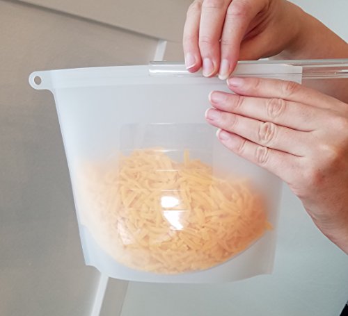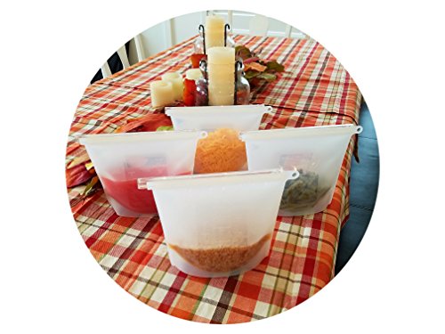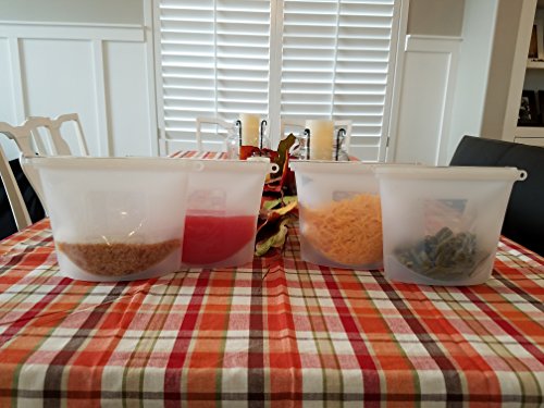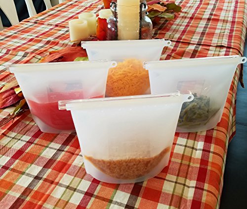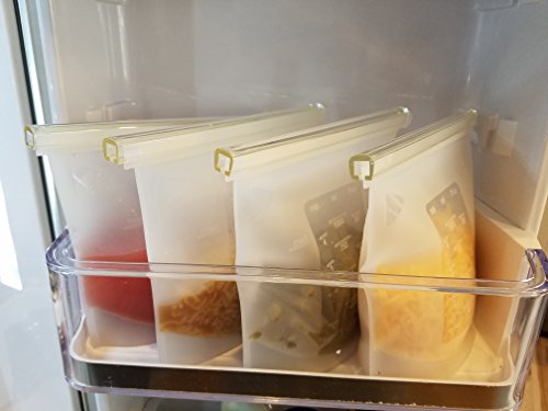 Silicone Slide n' Save Reusable Storage Bags, Clear Reusable Food Grade Silicone, Eco Friendly and BPA Free, Ideal for Storage and Freezer food (4-pack), Airtight and Leak Proof, Great for hot cooking
