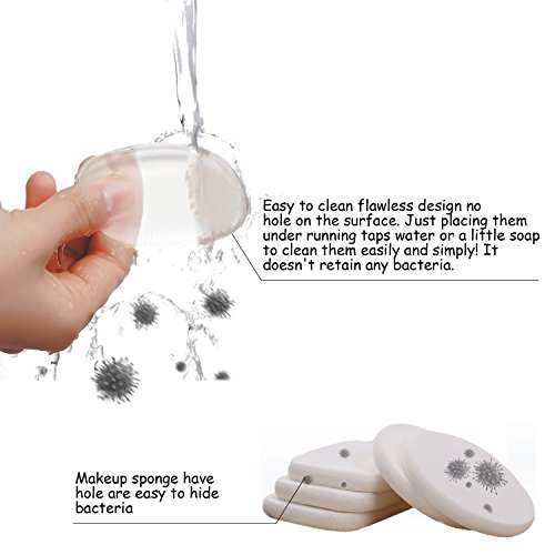 - ♥CLEAN & REUSE: the sponge with handle, washable, easy to clean flawless design no hole on the surface. Just placing them under running taps water or a little soap to clean them easily and simply! When you on the road, just use a wet or dry tissue towel to clean it temporarily and watch it later when you get home. Keep fresh each use, no makeup left no bacteria,hygienic.
