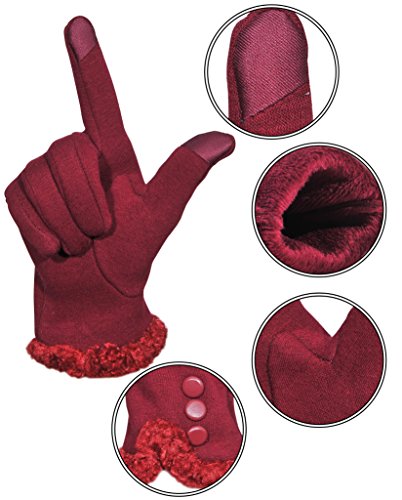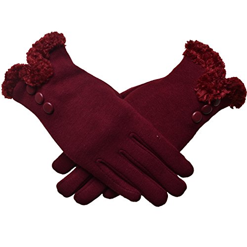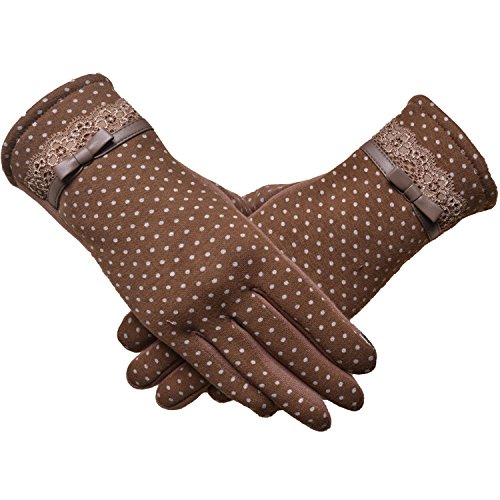 | Womens Lady Thick Winter Screentouch Gloves Dot Fleece Windproof Warm Mittens |