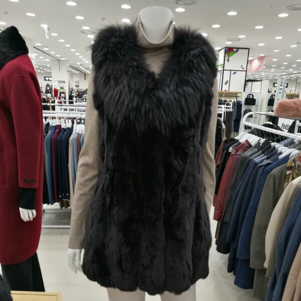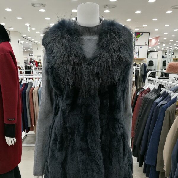 라쿤과 렉스털로된 퍼베스트입니다풍성한 퍼베스트로 우아하게 입으시기좋으며니트원피스와도 코디가능합니다