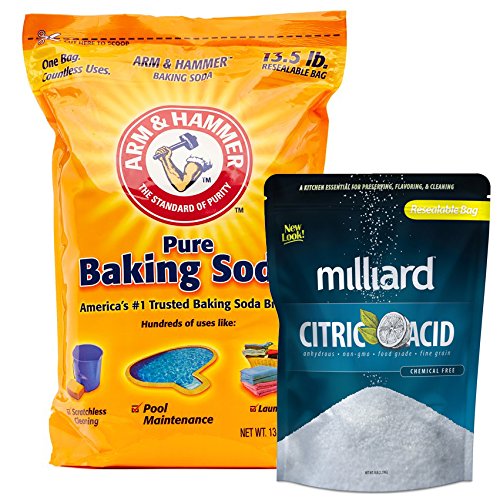 Arm & Hammer Baking Soda - 13½ lb. bag + Milliard 100% Pure Food Grade Citric Acid - 5 lb. bag for pool pH adjustment and alkalinity - Pool Stabilizer...