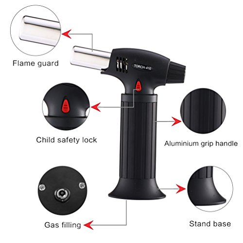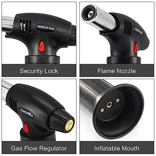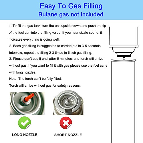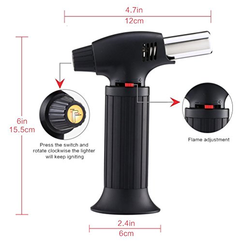 ❤ EXTREMELY EASY TO USE: You deserve to feel confident and be the boss of flame production. Starting the flame is as easy as pressing the CHILD SAFETY LOCK and the TRIGGER button after rotating the FLAME ADJUSTABLE KNOB counter. Depending on what you're using the torch for, you can easily adjust the intensity of the flame. It is very easy to refill the blow torch using widely available BUTANE GAS (NOT INCLUDED). ❤ 180 DAYS WARRANTY.