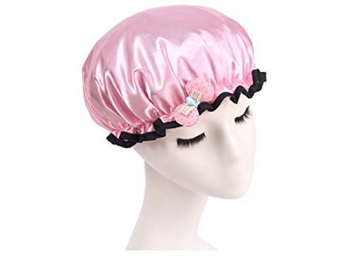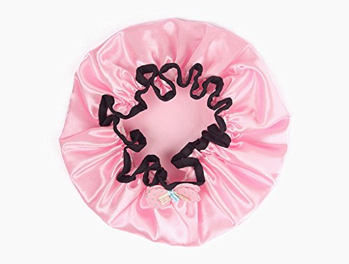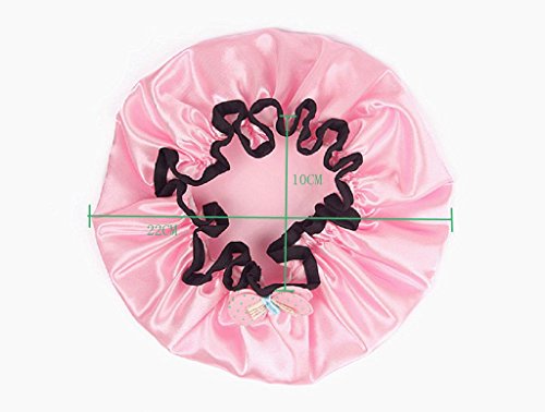 Shintop Children Shower Cap - Girl Cute Resizable Waterproof Double Layer Environmental Bath Hat Solid with Bowknot Kawayi EVA Hat Satin Bonnets Perfect for Bath, Hot Oil Treatment (Pink)