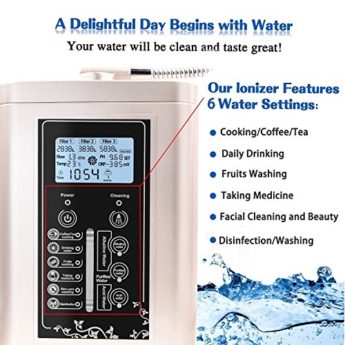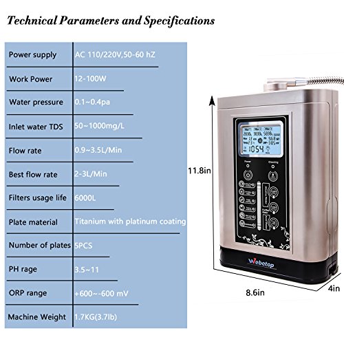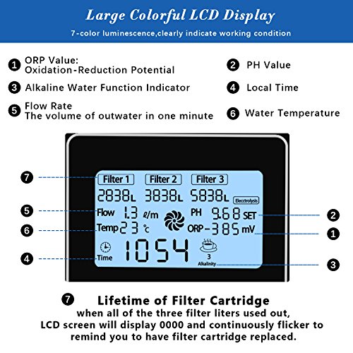 Additional Features: 110v-240v power universal/ produce water pH 3.5 to 11/ +600 to -600mV ORP level/ Make the water TDS from 50 to 1000mg/L/ Super large 3.8 inch colorcul LCD screen display./100% offer refund if you are not satisfied with the product.