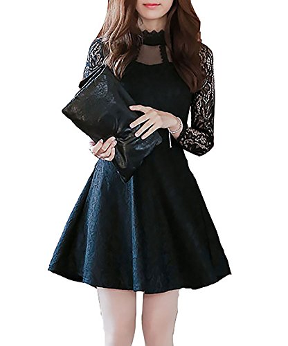 -. Feature : きれいめレース素材を採用した韓国風おしゃれな長袖ミニワンピースドレス。 / 上品エレガントな姫系デザインで女性の魅力を更に引き出します。 / フレアなスカートときゅっとしまったウエストラインが対照的で、着やせ効果も期待! / 魅力感をアップスタイル、優雅もかわいいにも演出出来るから 彼とデートやラブタイムに 大活躍間違いなし。