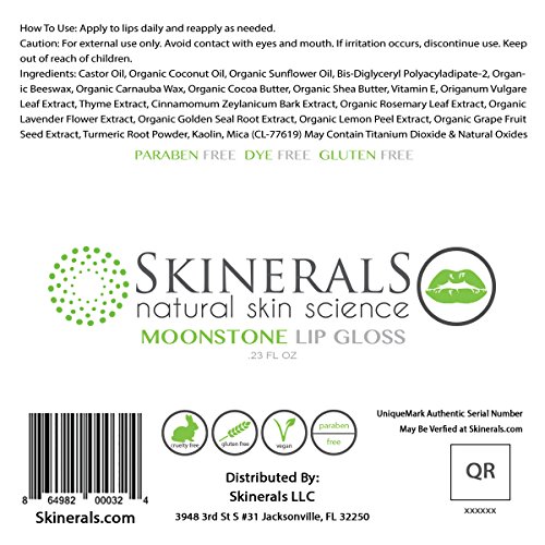 Skinerals Moonstone Lip Gloss with Organic and Natural Ingredients to Moisturize Lips Natural Safe and Effective Lip Treatment (Glaze Clear)