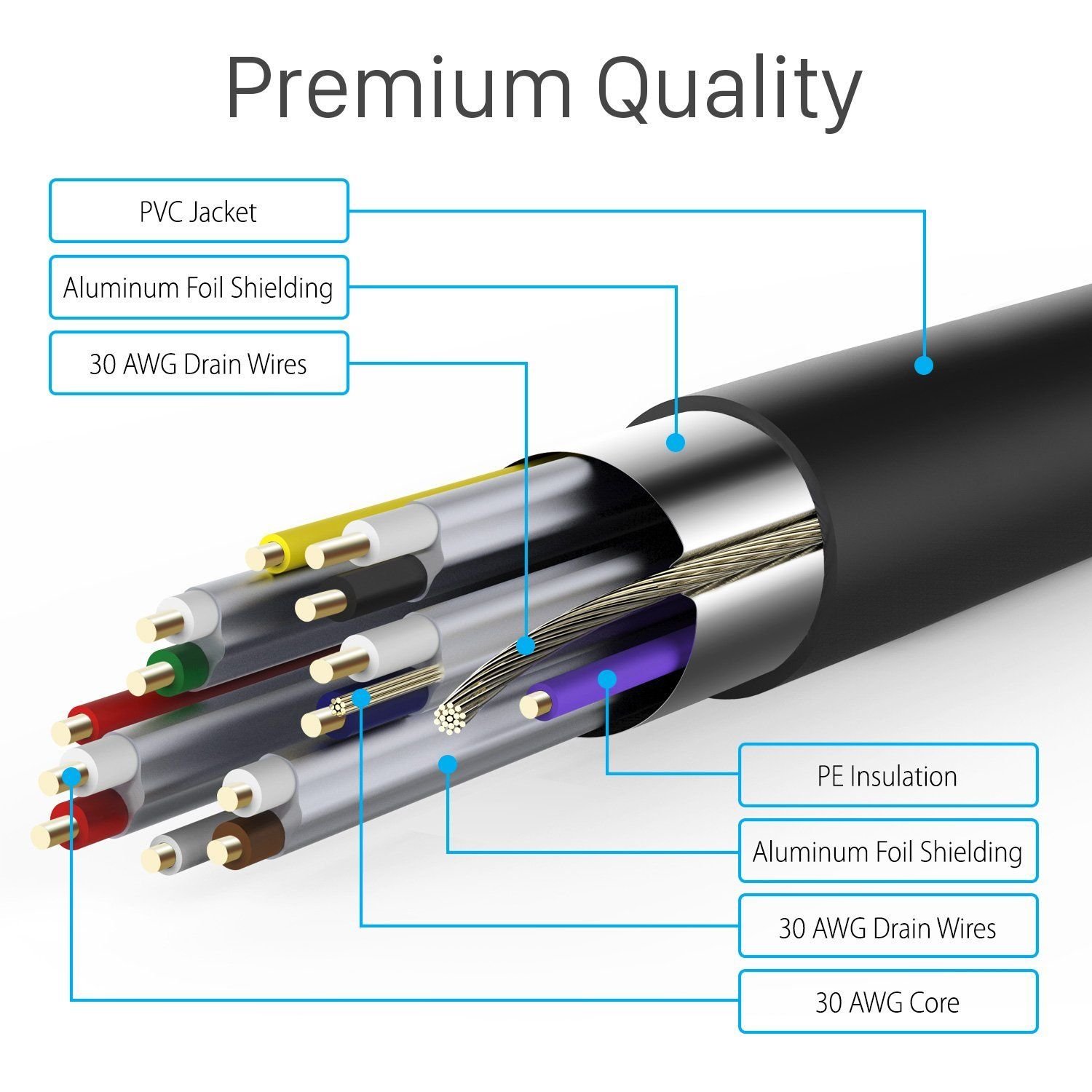 Using a gold-plated connector, it can withstand corrosion, reduce discoloration and provide the highest signal transmission rate.