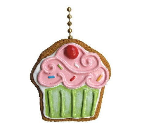 Cupcake Cookie Bakery Sweet Shop Ceiling Fan Light Pull. Attached 6-inch 18k-gold plated chain and connector. Made of resin. Three dimensional. Approximately 2 inches. The detail of the resin piece is extremely fine and accurate. Once the molding process is complete, each piece is painted with life-like color and detail that will not rub or wash off.Feature