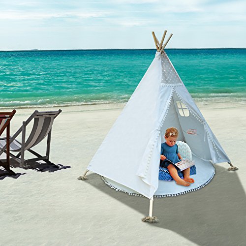 ※【Childhood Memories】 ??? Every child loves the teepee as their playhouse,they enjoy the feeling of privacy and personal space. this will make the best memories in their childhood. ※【Great Gift for Kids】 ??? Our high quality teepee tent is a perfect present for your children's birthday, christmas. it will be great performance in their sleepover party,they will love their private space and become more independent. ※【The Design of This Kids Teepee Tent】 ??? large space five walls design, with door, window, pocket.It is Very convenient for childs play in it.it is really the home feeling for your kids. ※【Build Tents in Any Place】 ???? Assembly and disassembly easy,You can build the tent at home, garden, seaside, any place you like. ※【Unique Tipi Tent】 ??? Wooden poles and stableball will make your tent more satable,Cotton carpett come with the package is high qualityit and non-slip ,All is safety for your kids,colorful flags and star stickers will make your tent more different and fun,Especially at? night. ※【package include】: ?? 1.Wood poles x10 ?? 2.Carry bag x1 ?? 3.Top cover x1 ?? 4.Stable ball x1 ?? 5.Colorful flags ?? 6.Star stickers ?? 7.Carpet x1 ?? 8.Installation instruction Support 30-day Money Back and 18-month seller warranty 0 |
