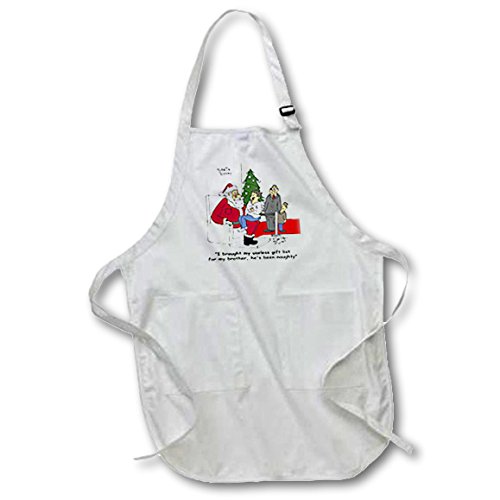 3dRose apr_2819_1 Dale Hunt Santa & The Useless Gift List Full Length Apron, 22 by 30", White, with Pockets