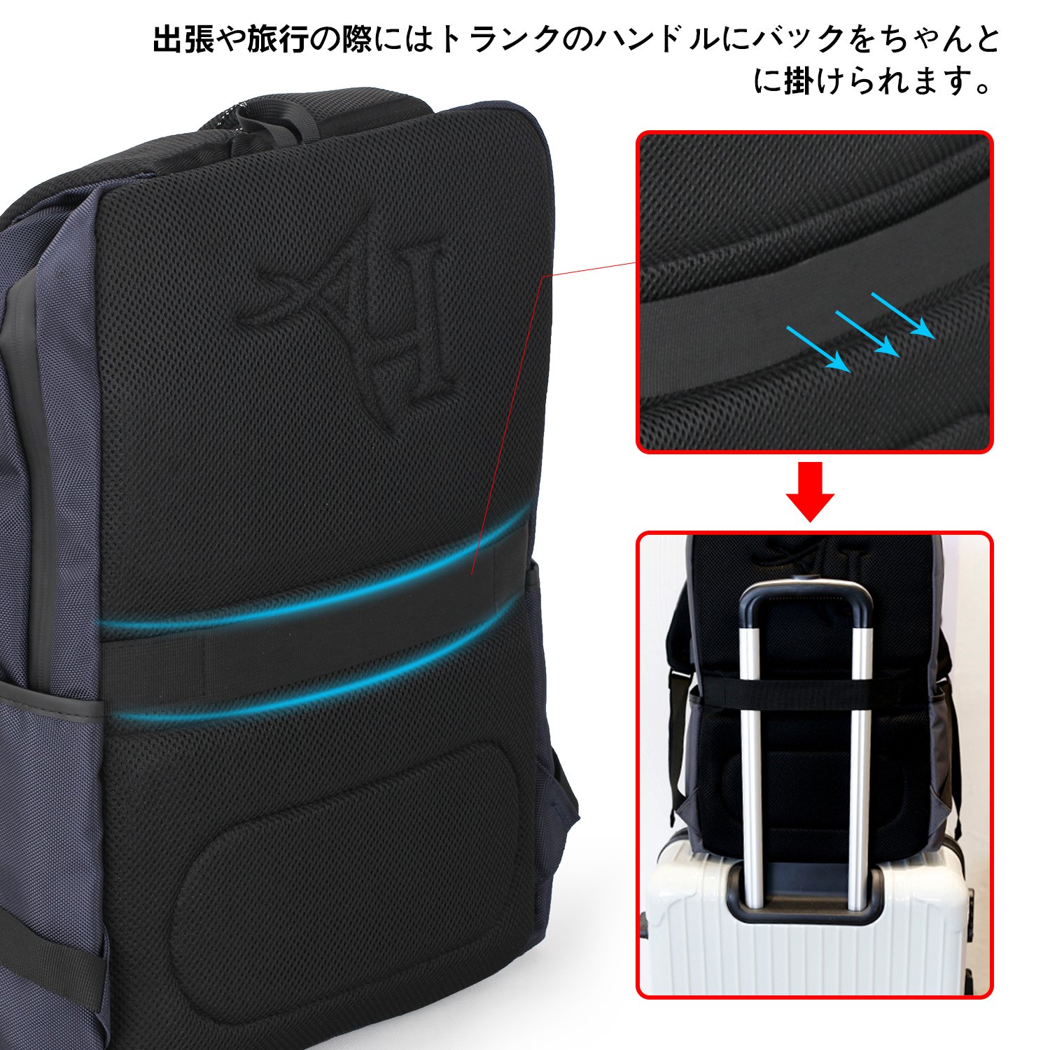 There is a belt that can firmly fix the back back to the handle of the trunk.