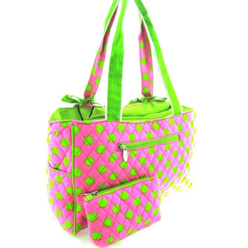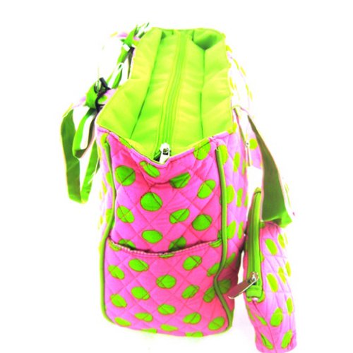 - Title : Cute! Quilted Polka Dot Print Baby Girl Diaper Bag Tote Purse (Pink/Green)