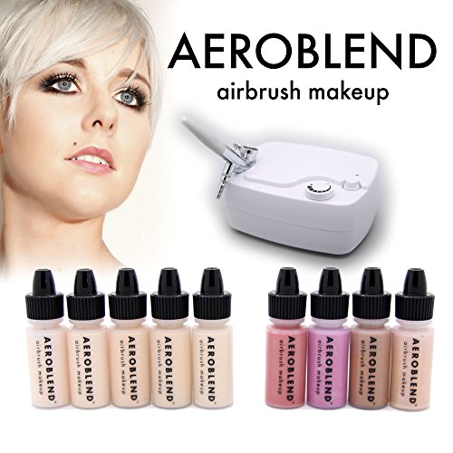-. Feature : THE CELEBRITY SECRET TO FLAWLESS LOOKING SKIN: Aeroblend airbrush foundation feels weightless on your face. Color stays true and lasts for at least 10 hours. Get coverage for acne, sun damage, redness, or anywhere you want to even out skintone without looking heavy or cakey. Does not contain silicone, fragrances, paraben, synthetic pigments or mineral oil. / PROFESSIONAL PRECISION AIRBRUSH ANYONE CAN USE AT HOME: Achieve an even, unblemished skin tone with a smooth, fine mist. Adjustable dial on the compressor lets you easily choose the pressure while professional double action stylus gives you maximum control. / AN AIR COMPRESSOR QUIET AND SMALL ENOUGH TO TRAVEL WITH: The Aeroblend kit comes with everything you need to start airbrushing every day. Get camera ready pro results. Powered by standard 110V AC plug (included). / EXCLUSIVE COLOR MATCH GUARANTEE: Aeroblend colors are formulated from natural pigments for real people and real skin tones. We include 5 shades in your preferred range - with other samples available at no extra charge. / FULL 1-YEAR WARRANTY: The Aeroblend compressor and airbrush are built to last -designed to be used daily whether for personal or professional use If anything goes wrong within the first year, let us know and we'll make it right.