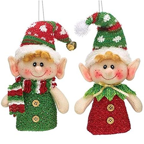 Plush Hanging Christmas Elf Ornaments - Set of 2 in Red and Green