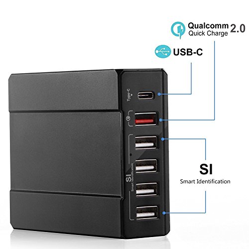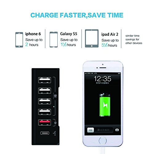 SI Smart Identification - All the remaining 4 ports are smart-charging ports, each of which can intelligently identify all 5V devices and deliver optimal high speed charging (up to 2.4A). Suitable for Apple iPhone 6s, 6 Plus, Samsung Galaxy S6, S5 Note, and others.