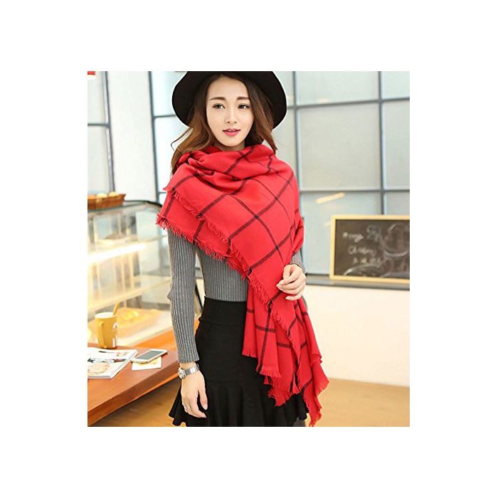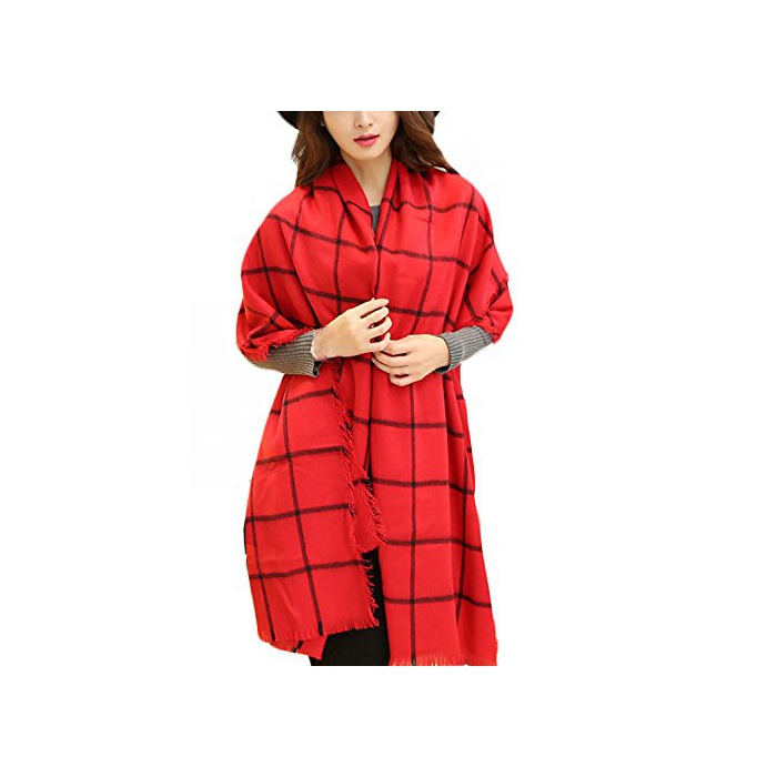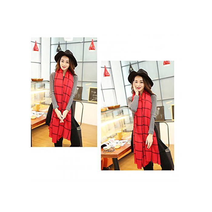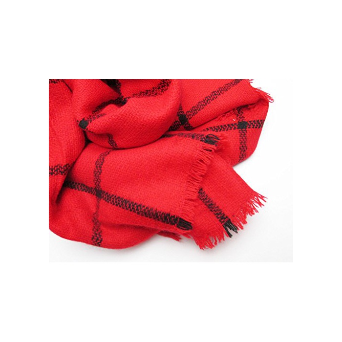 원본상품명: MIKA&MAYA マフラ ストル チェック 柄 大判 ロング ひざ掛け 防寒 レディス (フリサイズ, レッド)