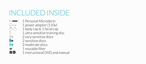 It works just like a professional microdermabrasion treatment without the hassle or cost. The hand-held device uses the same aluminum oxide crystals as the ten thousand dollar machines found at your doctor''s office. It smoothes away dead skin cells, diminishing age spots and other signs of aging. The system includes 1 personal microderm, 5 exfoliating discs 2 green and 3 blue, 1 electric cord, 1 facial cap, 1 body cap, 1 reusable filter, instructional CD and pamphlet. For best results when using the Personal Microderm, use a gentle cleanser, toner, and cell renewal cream in conjunction with the microdermabrasion tool. Personal microdermabrasion tool comes with two different sizes of disc attachments, offering two different grits for exfoliation. Vacuum action in the tool sucks the skin into the rotating disc, bringing blood flow and collagen to the surface. Removes the thin layer of dead skin cells so that rejuvenation creams and serums can sink deeper into the skin and work more effectively. Benefits: Greatly enhances poor, dull skin texture by gently resurfacing the superficial skin layers. Softens and modifies fine ''expression'' lines typically seen on the forehead and around the mouth. Polishes and reduces fine, cr?pe lines on the cheeks generally caused by aging and sun damage. Smoothes pigment changes or skin discoloration. Contracts enlarged pores; exfoliates and suctions out clogged pores in case of acne. Polishes and smoothes out the margins of acne and burn scars; usually requires 10 initial treatments.
