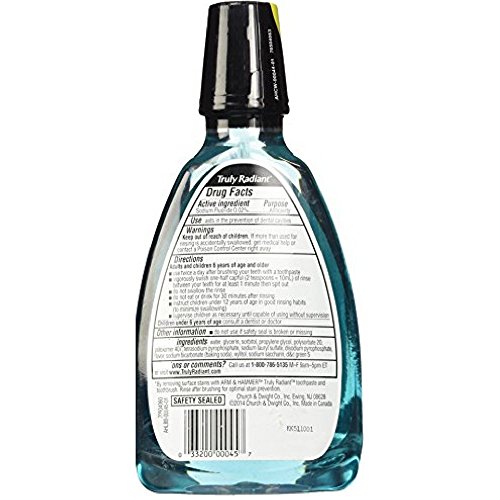 -. Binding : Health and Beauty -. Brand : Arm & Hammer -. IsAdultProduct : 0 -. Label : Arm & Hammer -. Manufacturer : Arm & Hammer -. PackageQuantity : 2 -. ProductGroup : Health and Beauty -. ProductTypeName : HEALTH_PERSONAL_CARE -. Publisher : Arm & Hammer -. Studio : Arm & Hammer -. Title : Arm & Hammer Truly Radiant Whitening & Strengthening Sparkling Mint Fluoride Rinse, 16 Fl Oz (Pack of 2)