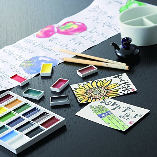 Kuretake Zig Gansai Tambi 36 Color Set MC20/36V Japanese Traditional Solid Water Colours , Fude Water Brush Pen Small , Medium , Flat , Sticky notes