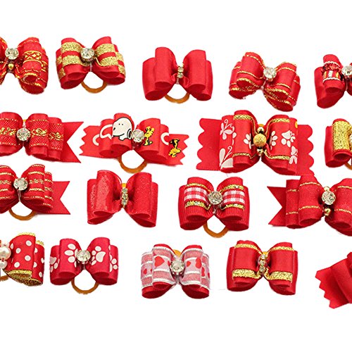 Meterial: Ribbon & Rhinestone & Faux pearl beads & Rubber bands Main Color: Red SIZE: about 2.5-4cm Please note: the pictures are just for reference. Different batches, different styles. We will assorted the styles randomly. Hop can understand! Packet: 20pcs/lot Measureed by hand,the size maybe have a little errors. Please understand! nd!Feature