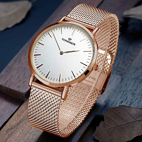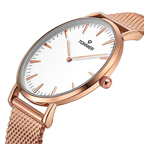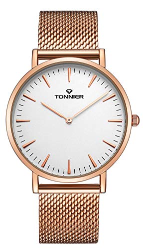 Brand, Seller, or Collection Name:Tonnier Part Number:W8479G-R Item Shape:Round Display Type:Analog Case material:alloy Case diameter:4.20 centimeters Case Thickness:0.68 centimeters Band Material:Gold Band length:Men's Standard Band width:2 centimeters Band Color:Rose Golden Dial color:White Bezel material:Stainless steel Special features:battery include Movement:Japanese quartz